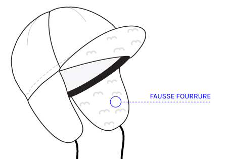 ➜ Fausse fourrure sur l’intérieur des oreilles et la visière relevée